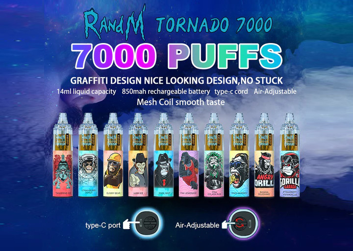 RandMのトルネード7000は気流の制御機能の再充電可能で使い捨て可能なvapeのペンである。ペンはmAhがすべての14ml e液体の上で使用できることを保障する電池を統合した1000と来る。